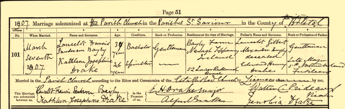 Marriage of Lancelot F.S. Bayly & Kathleen Drake in Bristol
