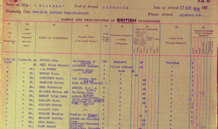 On 28/01/1929 we find Lancelot on board the ship “Fellerin de Latouche”, enroute to Martinique. Under occupation, he declares himself to be an artist. He returns from Martinique to Plymouth in April 1929. Other travels find him in Panama, Tahiti, Sydney, Wellington and San Francisco. A truly well travelled man.