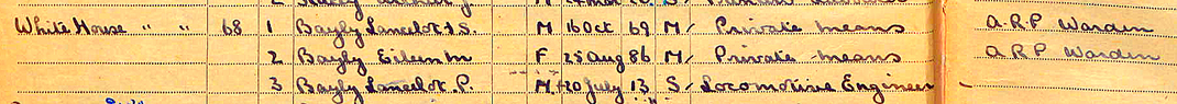 White House, 68 Bradfield Road, Padworth Live Register for 1939 where Lancelot and Eileen are A.R.P. Wardens and son Peter is a Locomotive Engineer