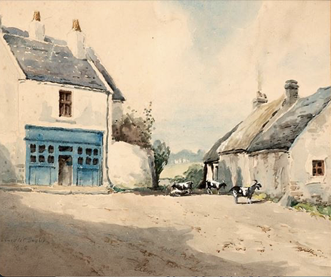 1 - Upper Main Street, Bray, - Lancelot Bayly, 1927, watercolour, in Bray Public Library.