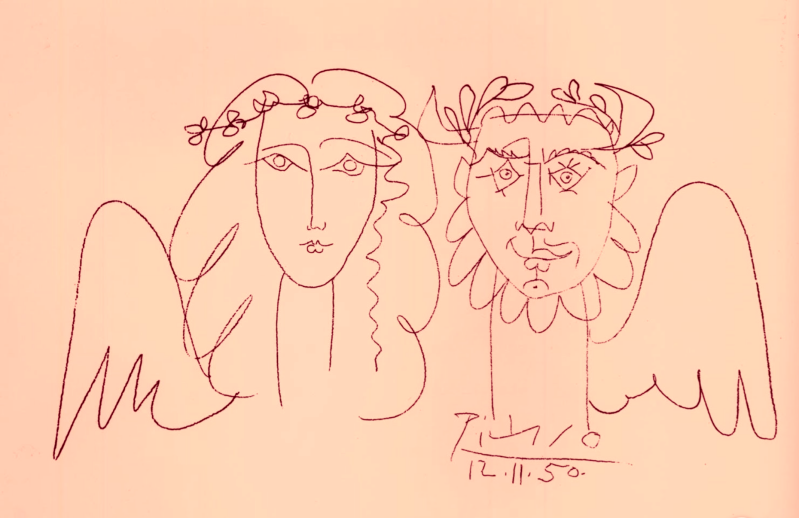 During a 1950 Peace Conference held in London, Picasso attended. He was invited to dinner at Bernal's flat at Torrington Square and drew this mural on the wall as gratitude. The entire wall has since been removed and is preserved at Birkbeck College.