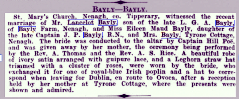 Marriage of Lancelot F.S. Bayly & Eileen Maud Bayly at Nenagh C.O.I.