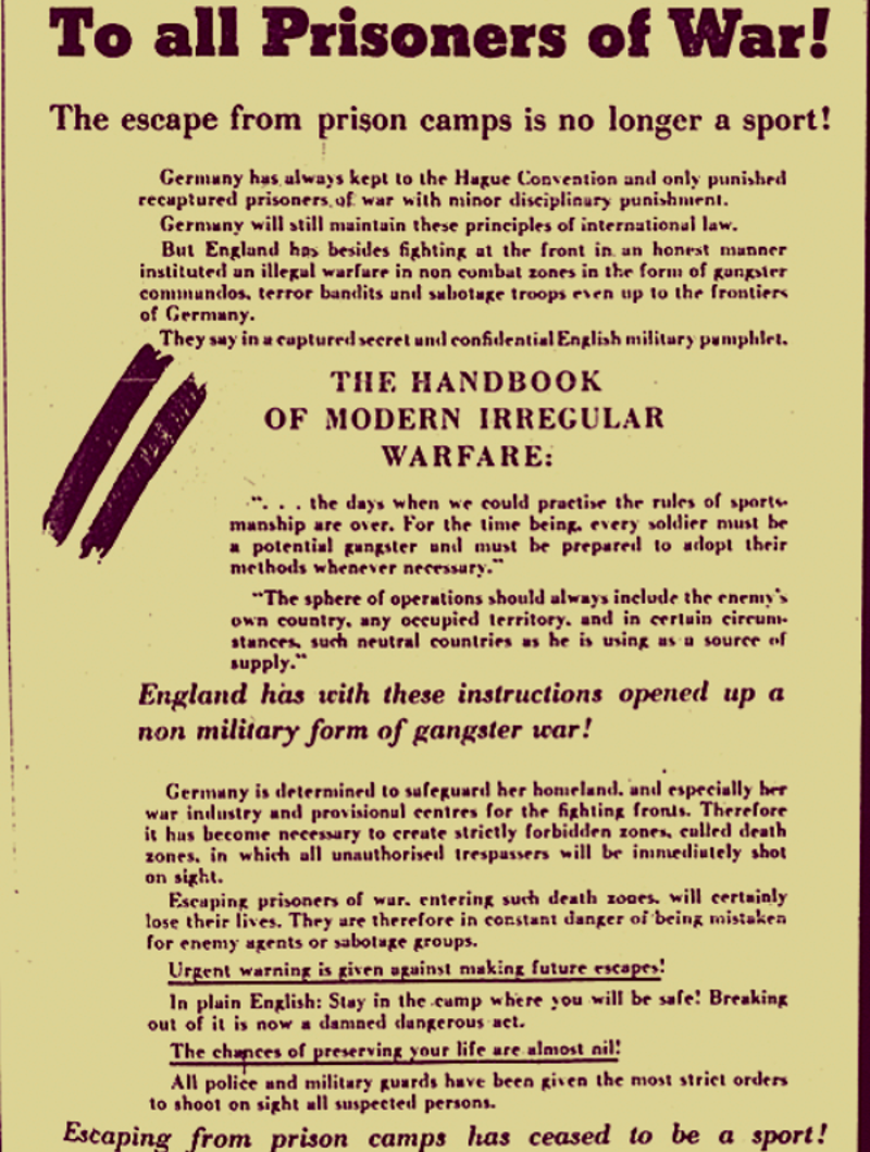 Terence was pulled aside and interviewed by one officer who had obviously read Debretts, and had received intelligence from the German Consulate in Ireland and was aware of the Prittie families status among the Ascendancy class in the Free State and the burning of the family home in 1923. Terence was advised to give up the charade and ask for a transfer to a British Camp. Whilst in Luckenwalde, the opportunity was forever present to make their escape. However being over 400 miles from any coastline or neutral territory they were once again faced with the problem of navigating their way through enemy territory without any documents and a very vigilant civilian population.